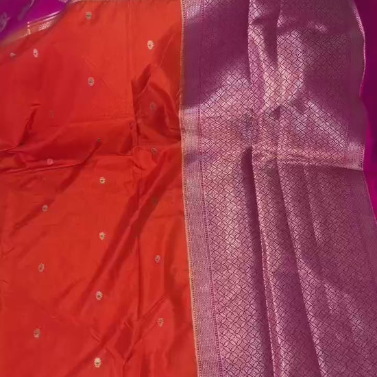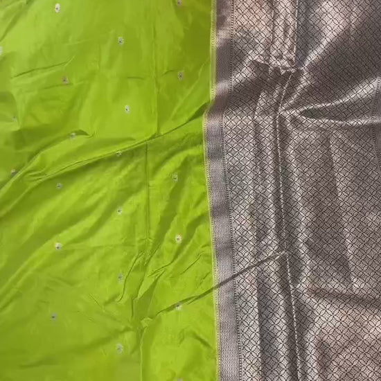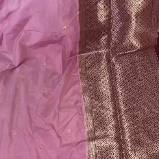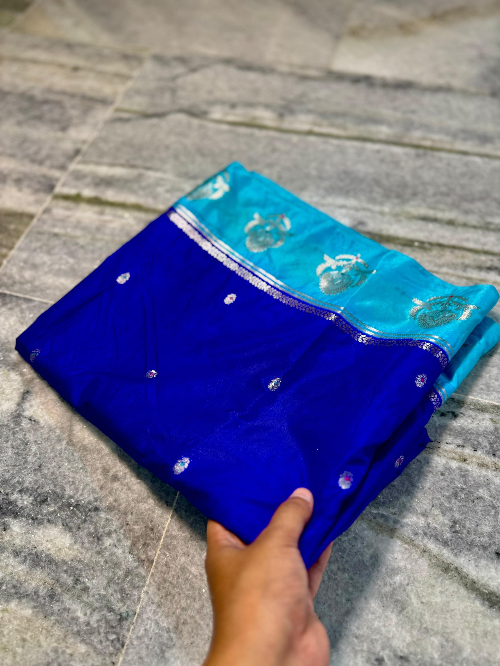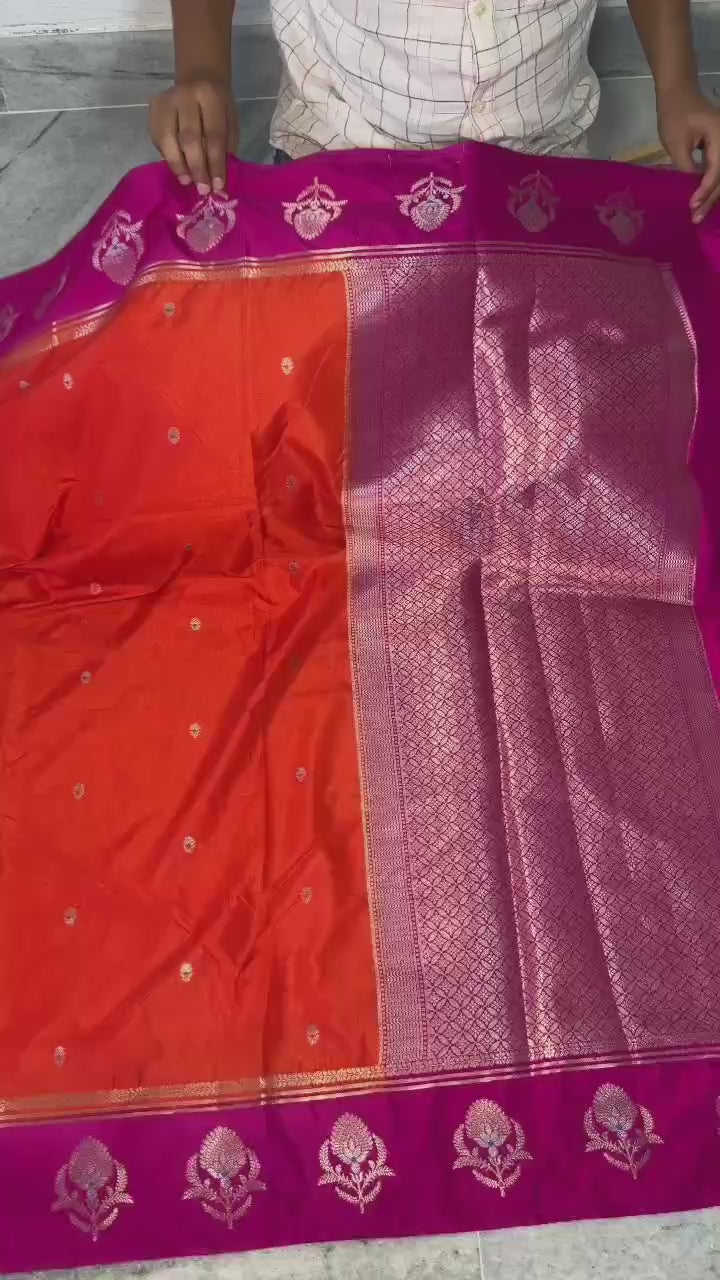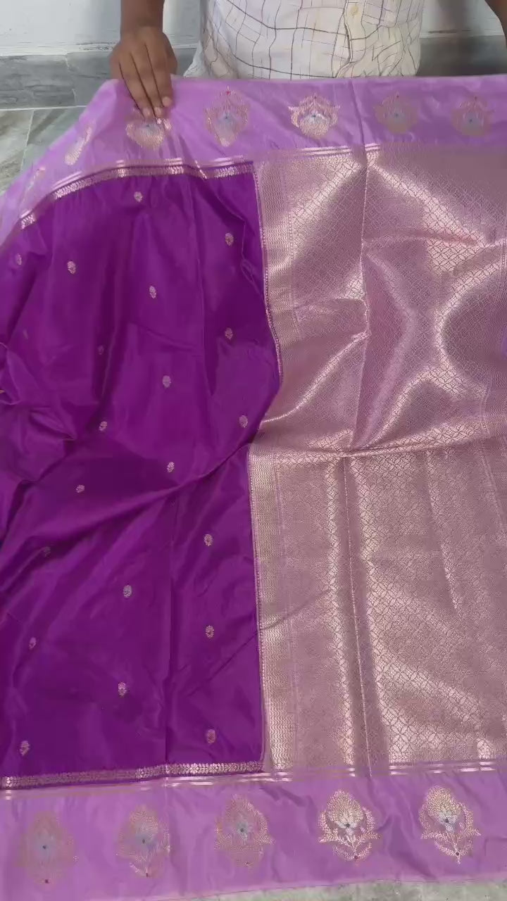 - Border: Banarasi zari weaving with big Alfi Mina floral pattern