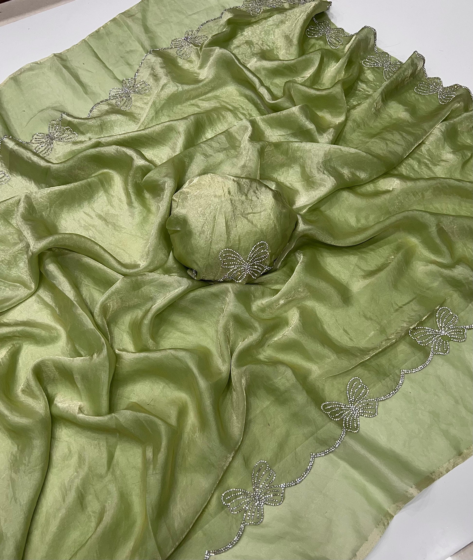 - Blouse Fabric: Matching Space Silk with Jarkhan Work
