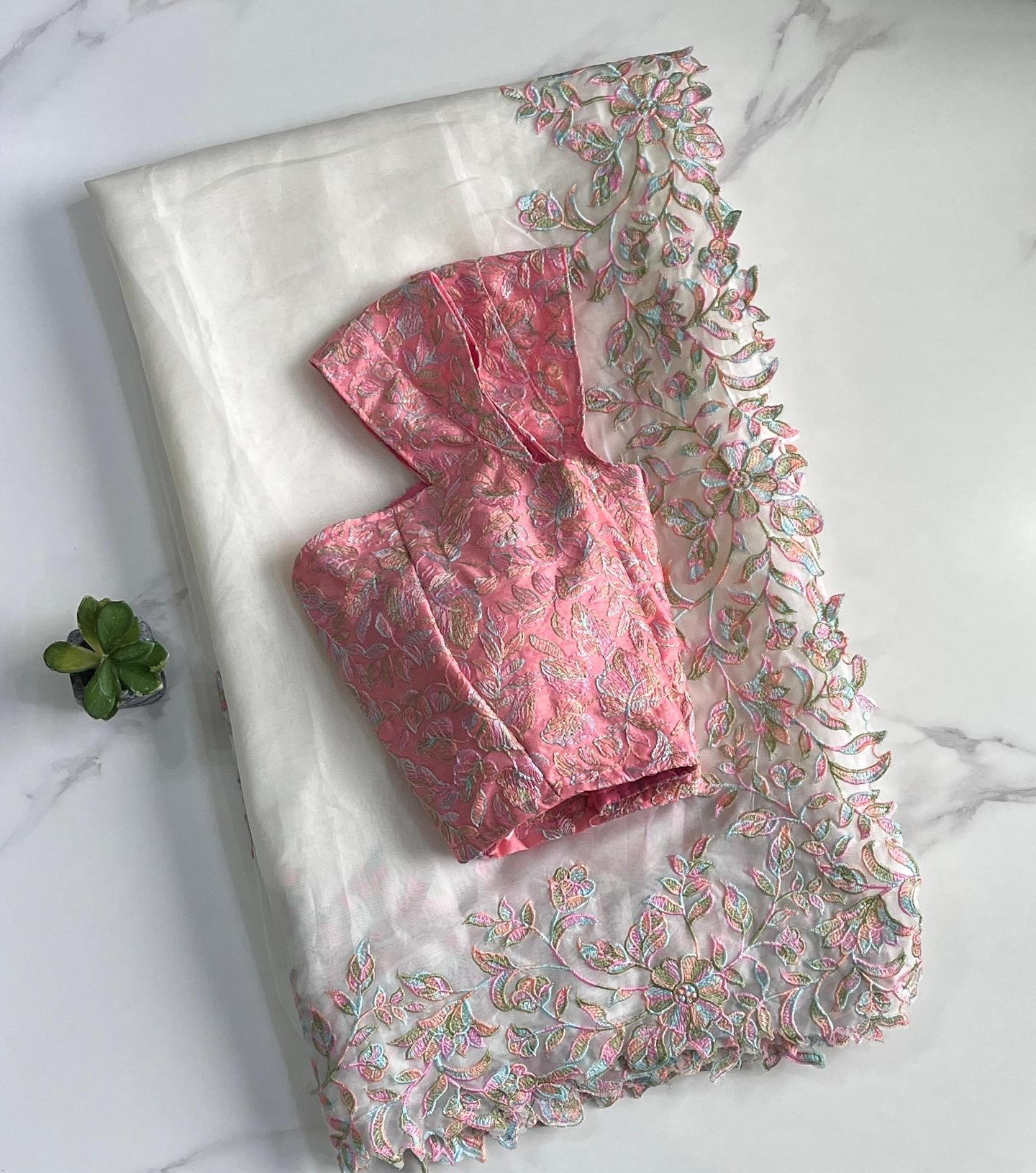 Experience elegance with our Premium Pure Taby Silk Sarees featuring exquisite Dhaga Embroidery Work.