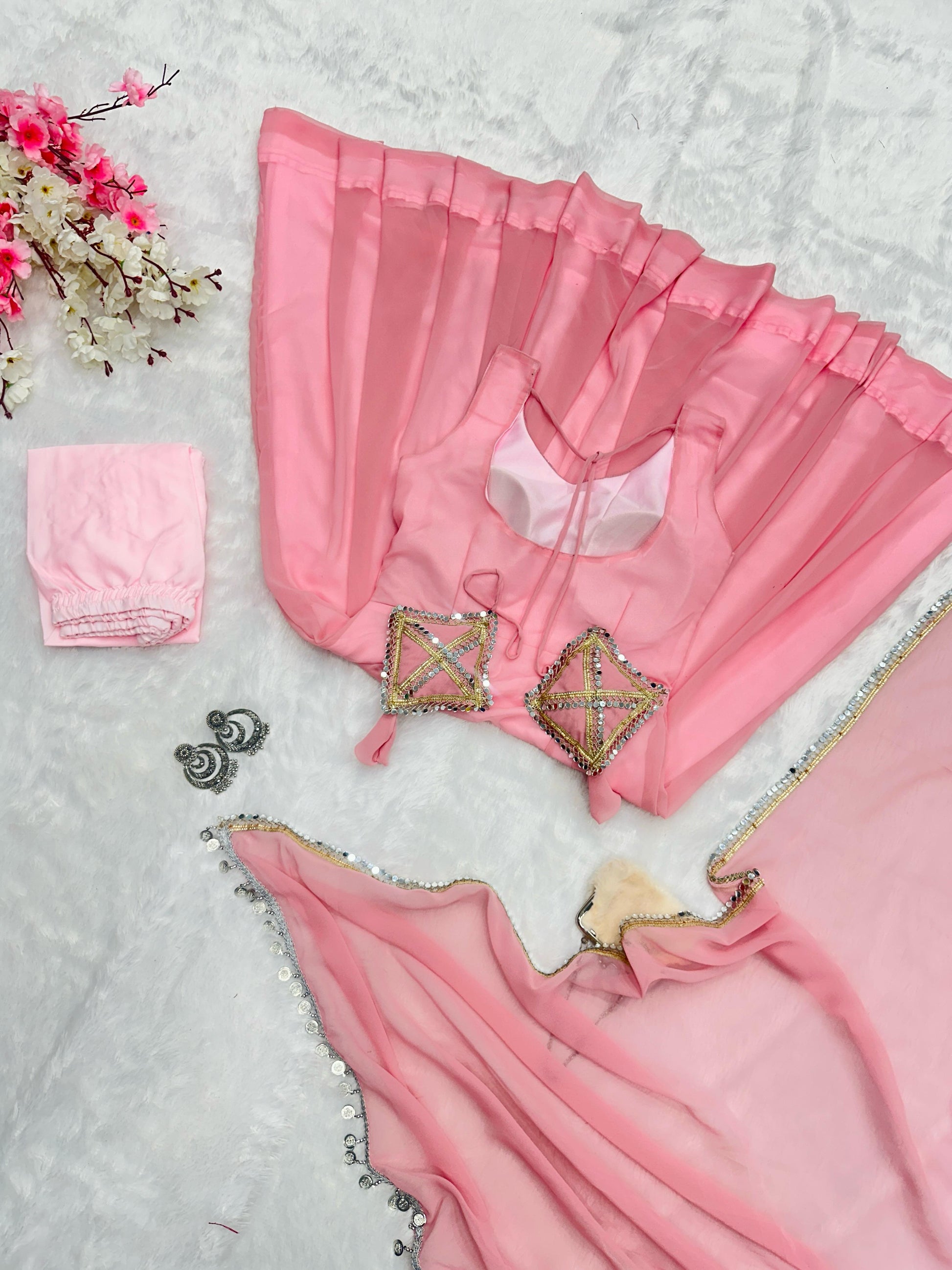 Dupatta: 2-meter Georgette dupatta with elegant real mirror lace border