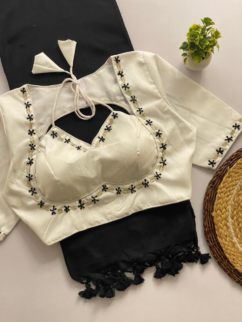 Blouse Design: Handcrafted with heavy handwork, Spaghetti-style pattern