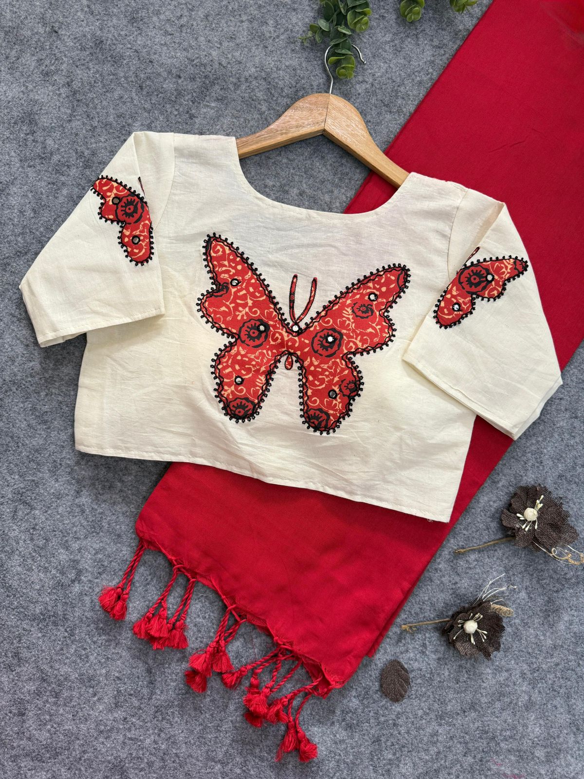 - Blouse Fabric: Heavy Buta Work on Aura Cotton, Padded with Pure Cotton Lining