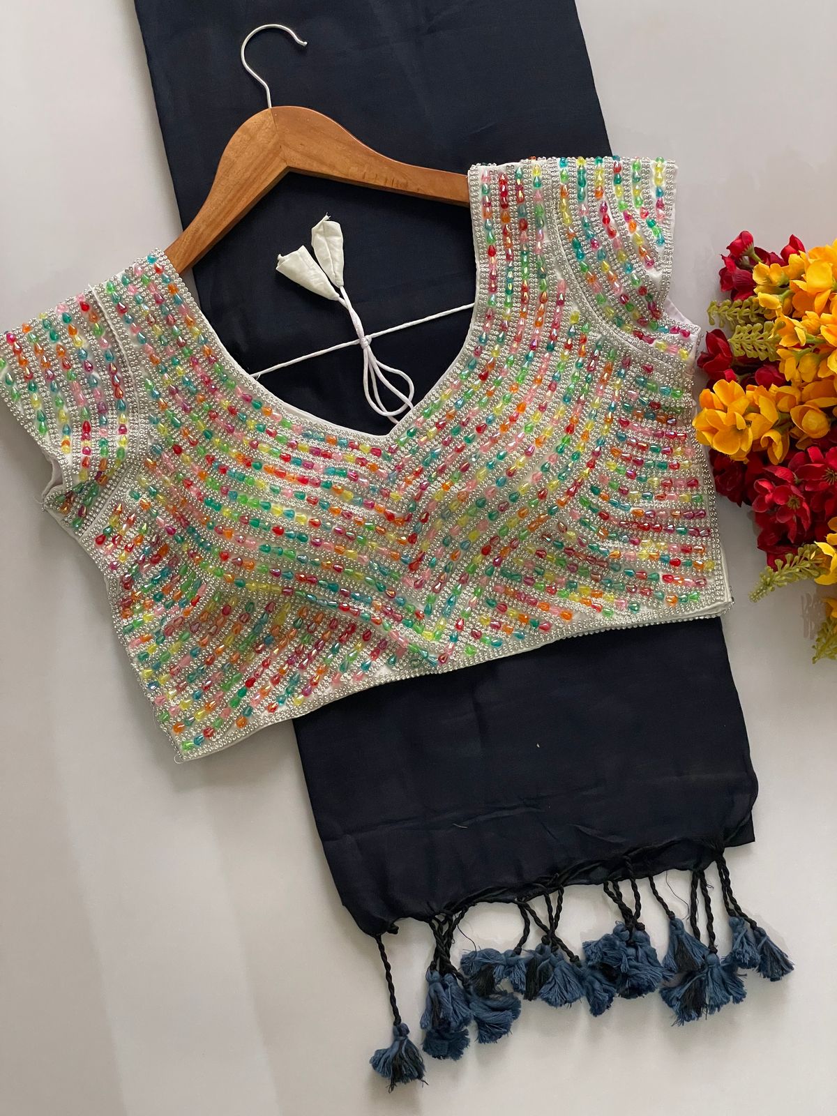 - Moti Work Blouse (Stitched): Ready Size 38" (Alterable up to 42")