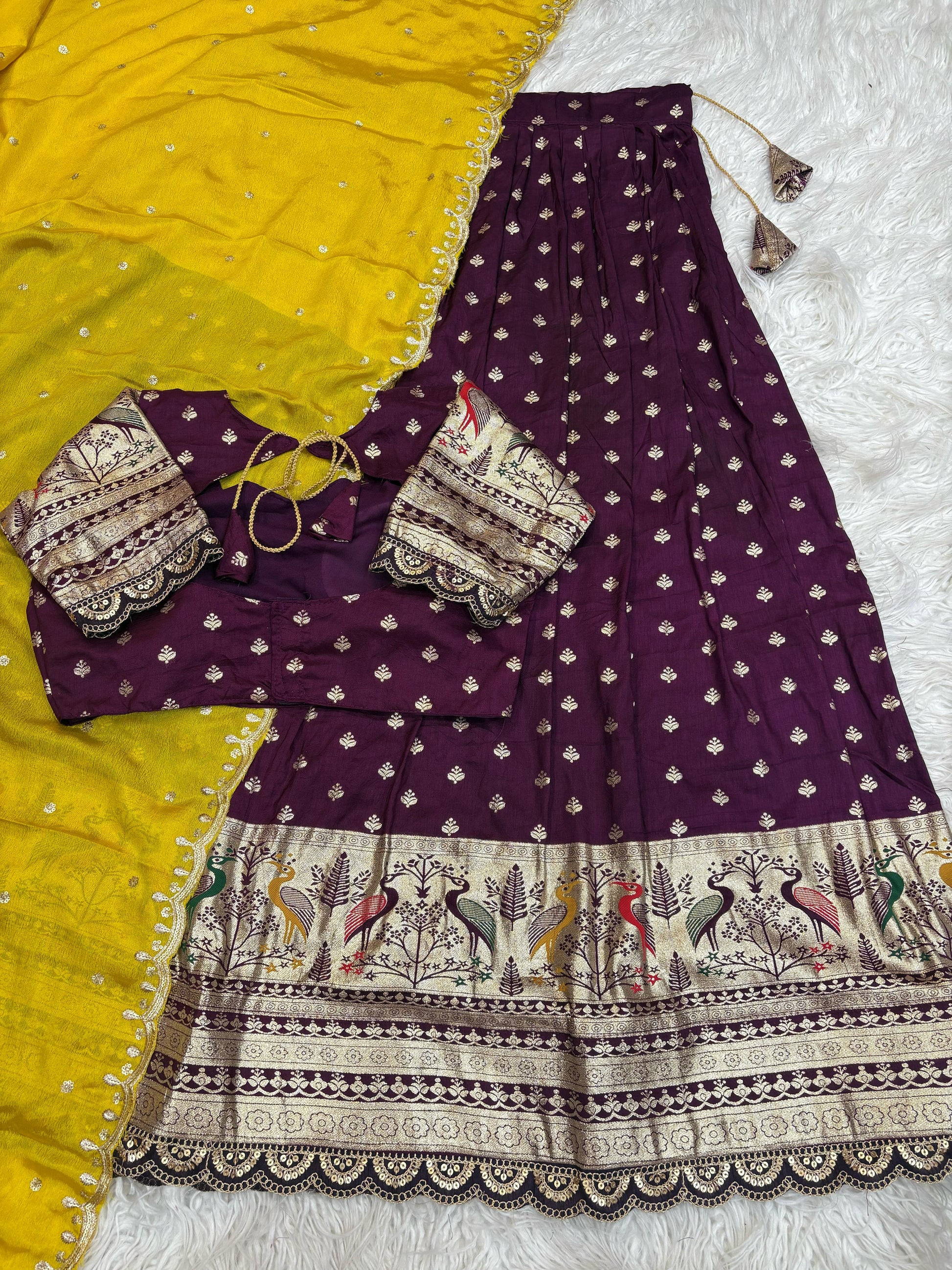 Pure Soft Fabric Lehenga Set with Jacquard Border & Fancy Cutwork