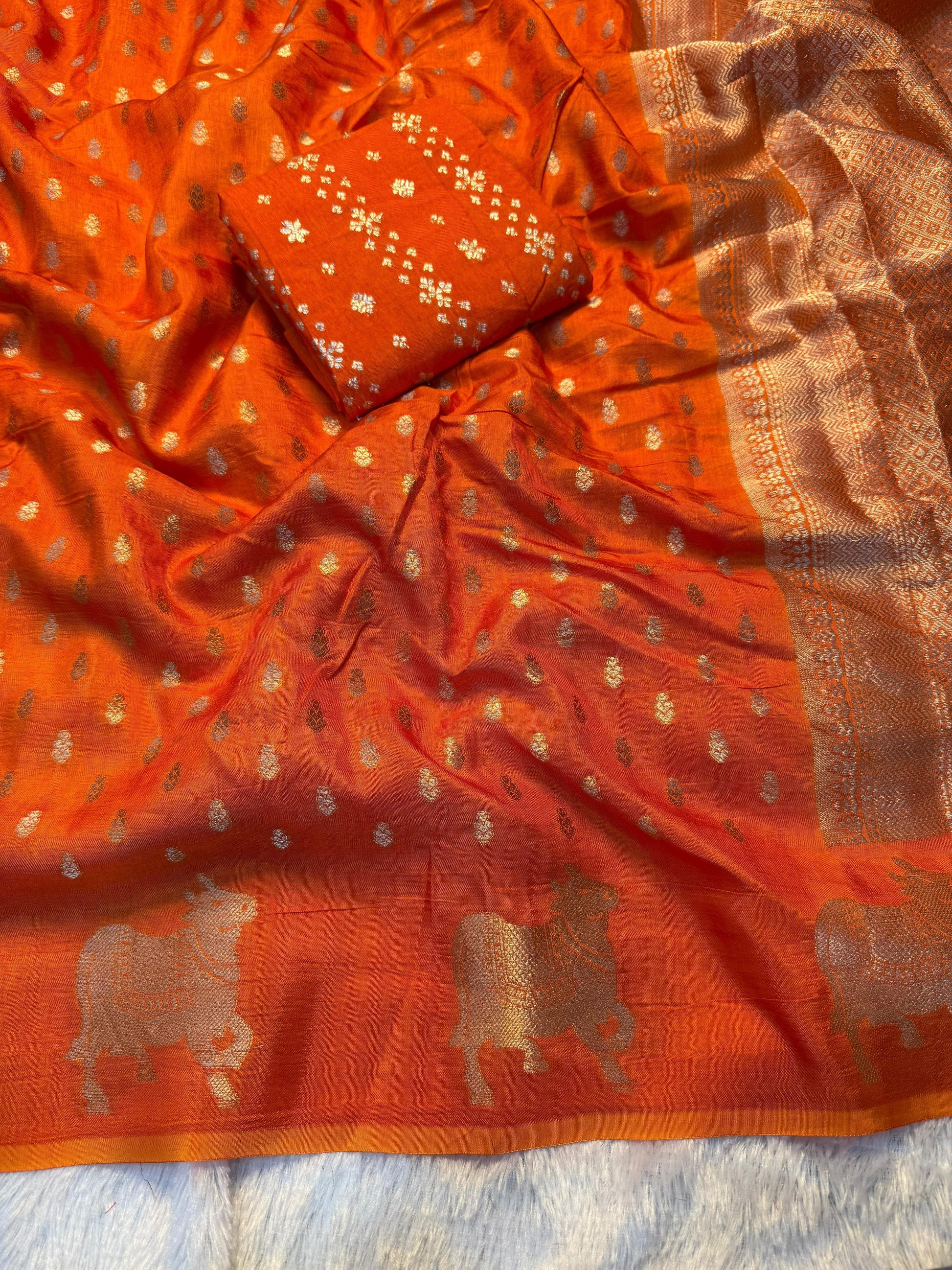 - Blouse: Matching viscose dola blouse piece included