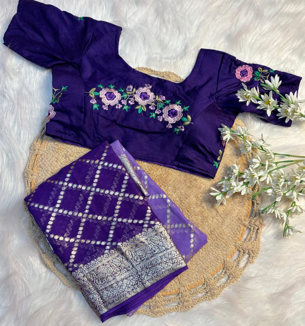 Pure Viscose Georgette Saree with zari on all over the saree as shown And